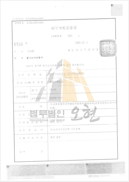 검찰은 법무법인 오현 성범죄사건대응TF팀이 제출한 의견서와 현장 분석 자료를 꼼꼼히 검토하였습니다. 특히 '피해자가 느낀 불편함은 인정하되, 피의자에게 성적 목적의 고의성을 단정하기 어렵고 진지하게 반성하고 있다'는 저희의 변론 방향을 적극적으로 수용해 주었습니다.