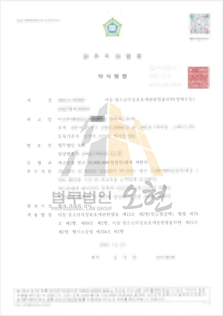 결과적으로 사건은 정식 재판 없이 벌금 1,000만 원의 약식명령으로 종결되었습니다. 재범의 경우 징역형이 선고되는 사례가 빈번한 아청법 위반 사건에서, 실형을 면하고 벌금형으로 사건을 마무리한 것은 오현의 치밀한 전략이 만들어낸 쾌거였습니다.