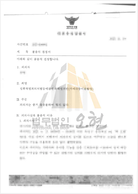결과는 완벽한 혐의없음 불송치였습니다. 고소장 하나만으로 성범죄자로 몰려 인생이 송두리째 흔들릴 뻔했던 의뢰인은, 오현의 초동 대응과 치밀한 진술 전략 덕분에 단 한 줄의 전과 기록도 남기지 않고 다시금 평온한 일상으로 복귀하셨습니다.