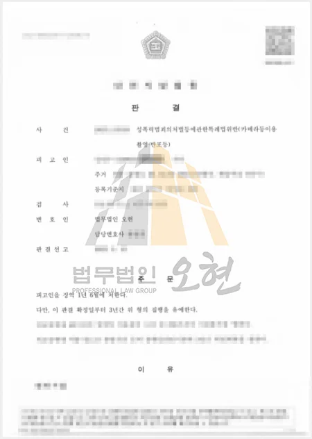 카메라등이용촬영물 유포 혐의, [결과: 징역 1년 6월, 집행유예 3년]으로 지켜낸 의뢰인의 일상
