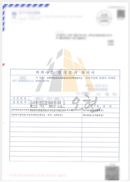 검찰은 법무법인 오현이 제출한 의견서와 반박 증거들을 면밀히 검토했습니다. 비록 전문기관의 진술분석 결과가 '신빙성 있음'으로 나왔음에도 불구하고, 오현이 제시한 객관적 정황상 아이의 진술대로 범행이 이루어졌다고 단정하기에는 합리적 의심의 여지가 크다고 판단한 것입니다.