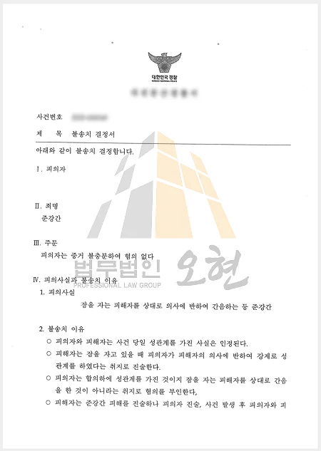 경찰은 법무법인 오현이 제출한 방대한 양의 의견서와 증거 자료를 면밀히 검토했습니다. 특히 상해의 인과관계가 불분명하다는 점과 고소인 진술의 신빙성이 낮다는 오현의 논증을 적극적으로 받아들였습니다.