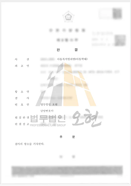 치열한 공방 끝에 검찰은 의뢰인의 친족관계에 의한 강제추행 혐의에 대해 불기소(혐의없음) 처분을 내렸습니다. 아동복지법 위반에 대해서도 법무법인 오현의 조력을 받아 1심에서 벌금형이라는 선처를 받을 수 있었습니다. 이후 검찰의 항소까지 기각되면서 의뢰인은 마침내 성범죄자라는 무거운 멍에를 벗고 사랑하는 가족의 곁으로 돌아갈 수 있게 되었습니다.